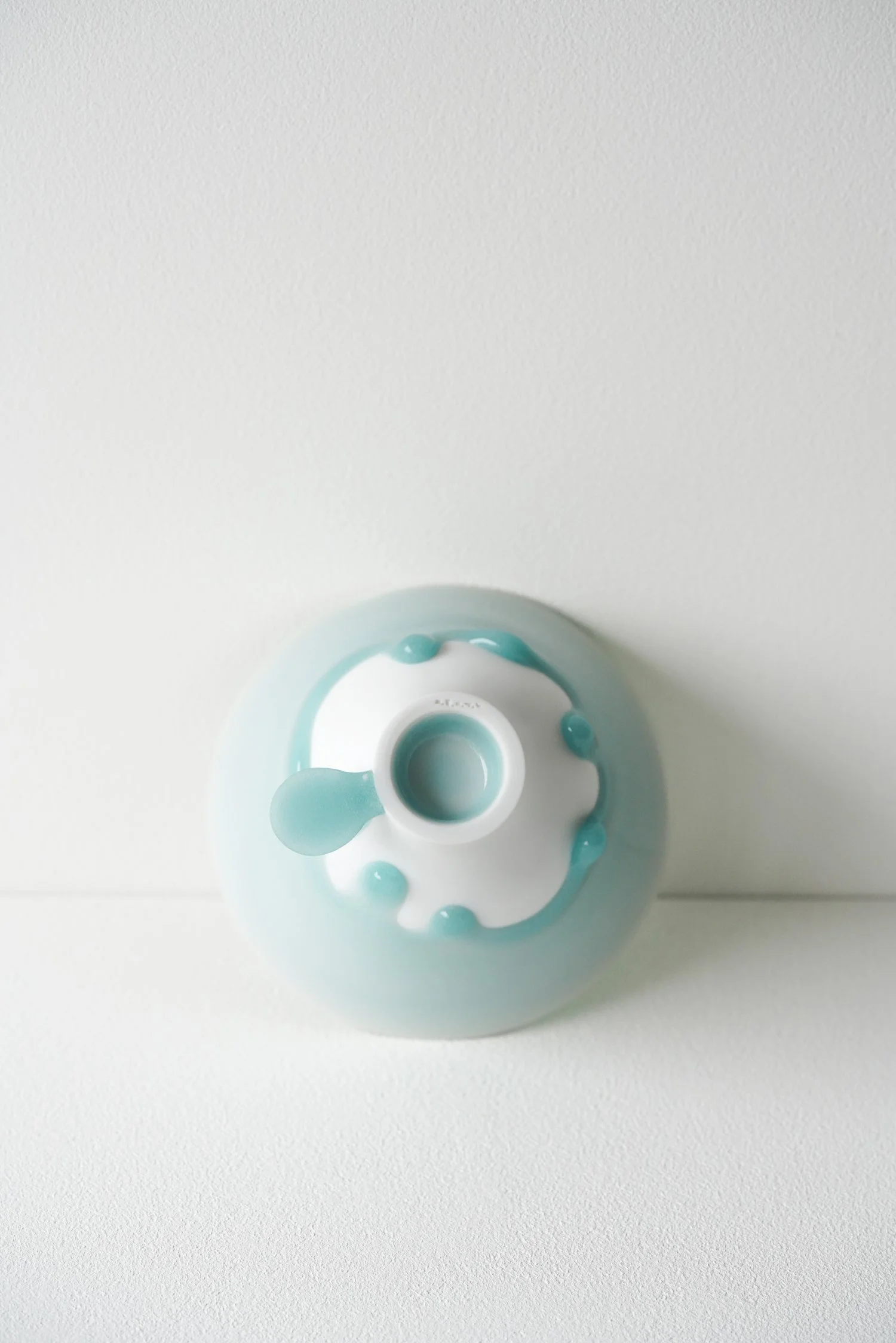 When the glaze runs down or reaches the bottom, it requires the hard labor of sanding and polishing to refine or reshape the glaze drips. Tiny scratches may occasionally appear during this process. Each piece is carefully inspected, and the maker considers these marks as part of the work.